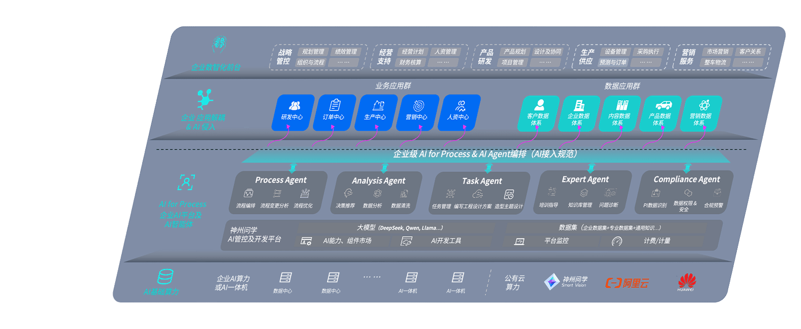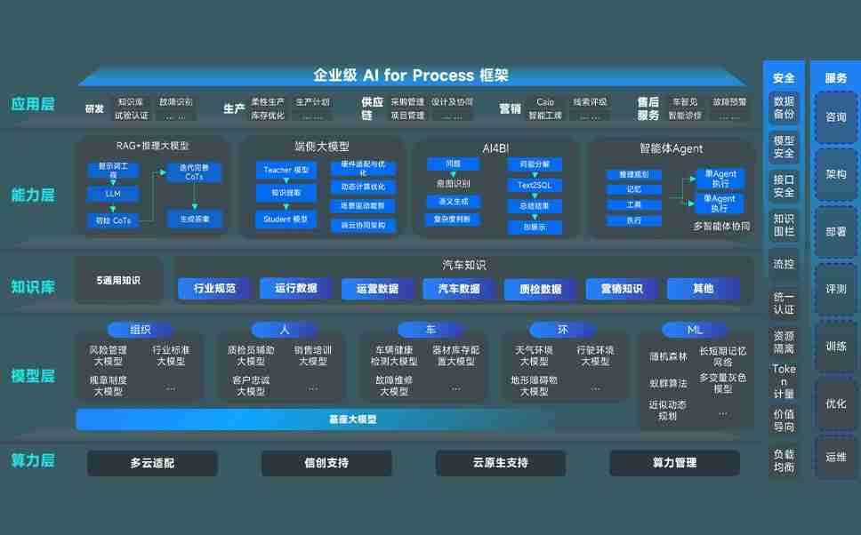 端到端的一站式AI工作空间深度融合了从企业战略规划到日常经营的全流程业务板块,,,,定向解决车企内部领域多、、、、部门多、、链条长、、场景碎片化等难题,,,支持车企快速构建以AI为核心的生产力写作体系,,实现任务执行与AI能力的无缝集成与交互